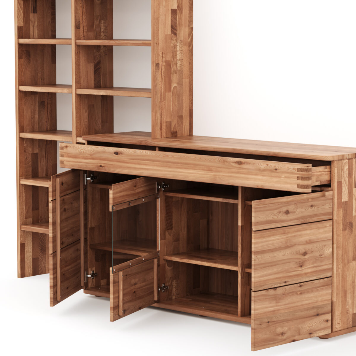 Wohnwand Cartago Soft – Astbuche massiv, natur geölt