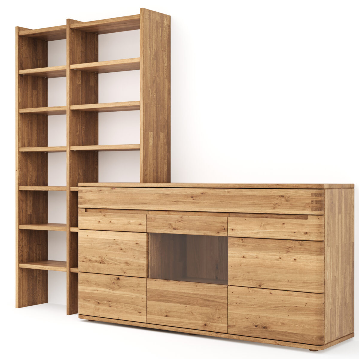 Wohnwand Cartago Soft – Wildeiche massiv, natur geölt
